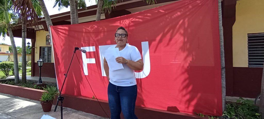 Acompañaron a los abanderados, la MSc. Narcy Margarita Bueno Figueras, Rectora de nuestra Universidad de Granma, la MSc. Tania María Heredia de la Guardia, Miembro Provincial del PCC que atiende la esfera social; la MSc. Yaritza Jerez Cabrera, Primera Secretaria Provincial de la UJC y Ángel Andrés León Nápoles, Secretario General de la FEU.