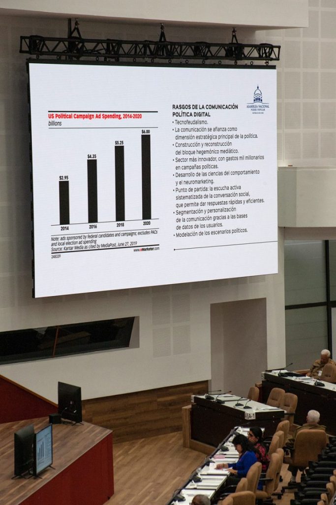 ¿Qué significa eso? La diputada lo ejemplificó de la siguiente forma: “ Imagínense que aquí todos tienen un megáfono en la mano, y cuando digo todos me refiero a más del 60% al 64% de la población cubana. Imagínense que todos saquemos el megáfono y empecemos a gritar ¿Qué significa eso?: ruido. ¿Quién se escucha por encima del ruido?, Pues, quienes tengan la posibilidad, las tecnologías para amplificarse”.