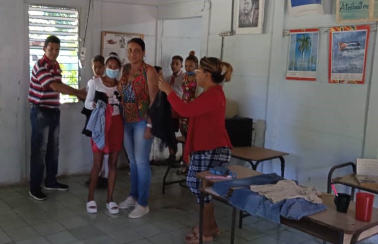 El Delegado, junto al Director y el Metodólogo Integral nos mostraron los educandos más afectados, con los que intercambiamos preocupaciones y necesidades para darles seguimiento y atenciones. En presencia de ellos y educadores y algunos familiares hicimos entrega de un donativo con prendas de vestir para los menores, así como artículos de aseo y materiales escolares.