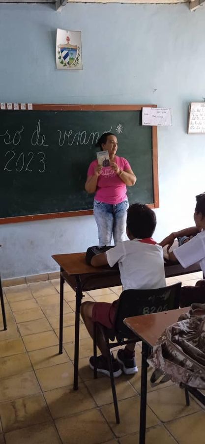 De igual forma la Lic. María Elena Licea Reyes, profesora también del CUM, imparte el Curso “Me divierto leyendo” desde la Institución Educativa: César Martí Romero, enclavada en la Comunidad La Marina, del Consejo Popular Campechuela II, donde los educandos agradecen el espacio instructivo y educativo.