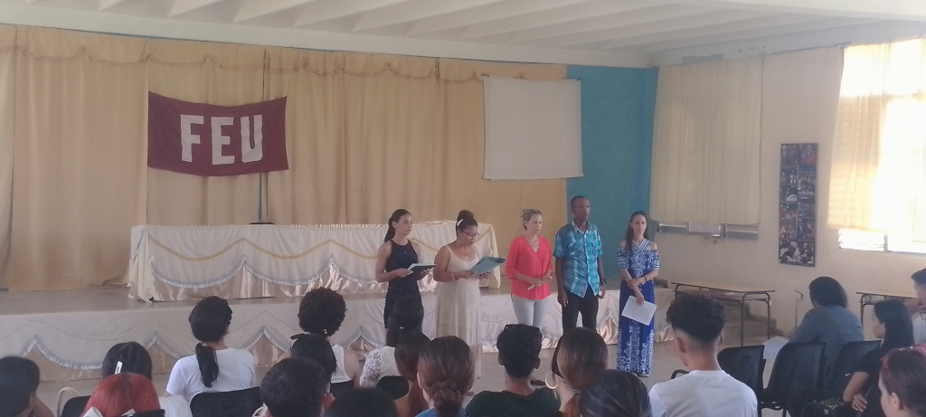 En la actividad de apertura, estuvieron presentes el EPG. Manuel Figueredo Beatón, Secretario del Núcleo PCC. FCES; Alejandro Ricardo Abreu Medel, Presidente de la FEU de la FCES; Lesyanis Pérez Arzuaga, Secretaria del Comité Primario de la UJC en la Facultad y la Decana, la EPG. Leaned Matos Hidalgo.