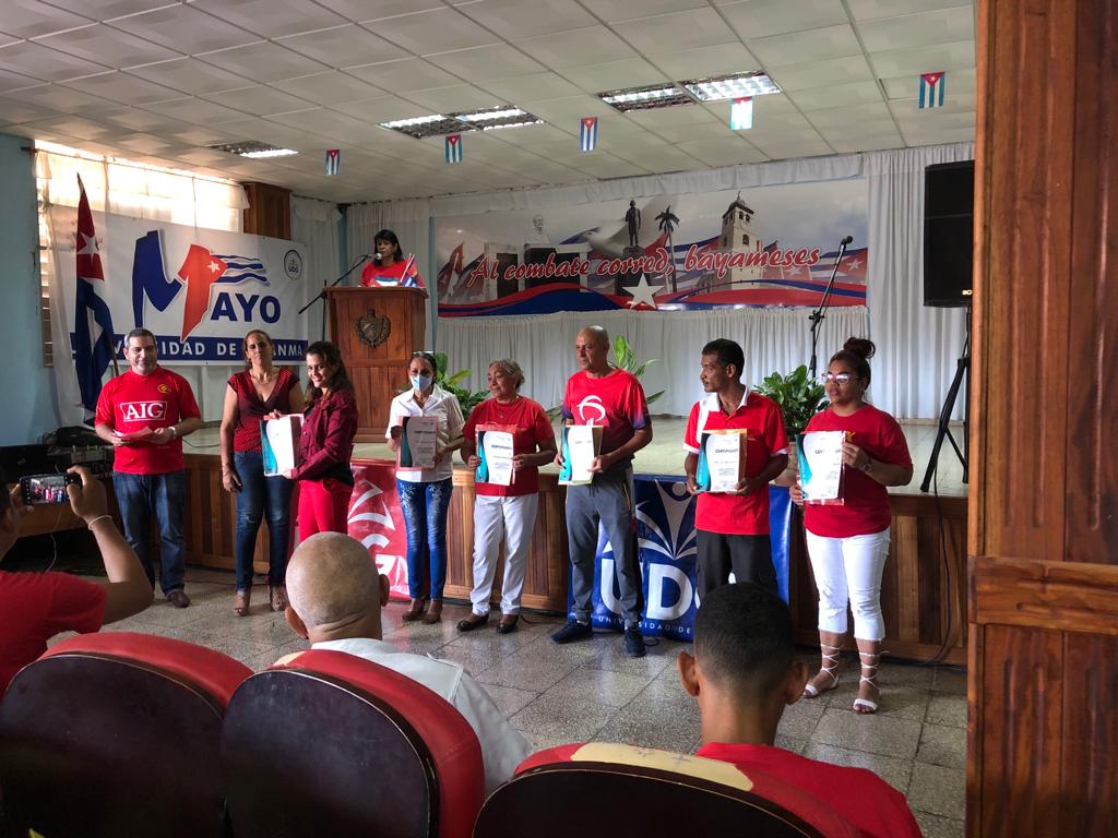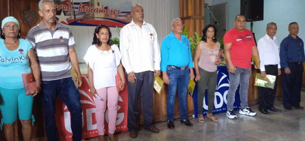 Recibieron este reconocimiento de manos de Yanet Gómez Cutiño, Secretaria de la CTC en el municipio Bayamo , de Narcy Bueno Figueras, Rectora de la Universidad y de Mailén María Silva Áreas,Secretaria del Buró Especial de nuestra universidad, los trabajadores: Carlos Aponte Cabrera, Mayra González Medina, Benjamín Gaskin Batista, Edesio Guerrero Batista, Nilda López Blanco, José Tamayo Espinosa, Rolando Guerra Espinosa; Carlos García Hechavarría, Pedro Ricardo Zaldívar, Beatriz Sosa Labrada, Gloria Tamayo Tamayo, Isaelia Fonseca Sosa y Enoelia Rivas Batista.