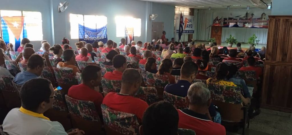 Los trabajadores de la Universidad de Granma se dieron cita en la Casa del Movimiento Obrero para ratificar el compromiso con nuestro líderes, con el modelo económico social socialista cubano y la historia de nuestra Patria, bajo el lema iA la Patria: Manos y corazón!